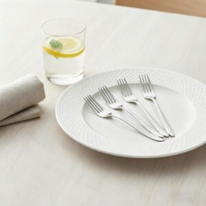 - 【Unique Designs and Comfortable Grip】 The smooth lines on the handles and the high-quality stainless steel make the fork set have an exquisite surface, which adds a unique pattern and a modern style to your table that making every meal a perfect experience. In addition, the sturdy handle has smooth, ergonomic lines and the surface is mirror-polished for safe and comfortable use.